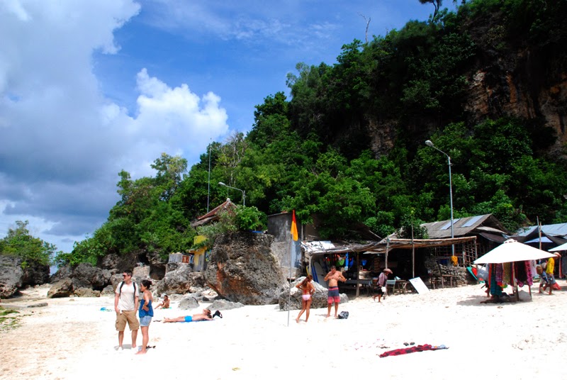 When I was adding pictures to Facebook, I noticed that I didn't remember to post pictures of Padang-Padang Beach to this blog after we visited there. Padang-Padang is one of the most beautiful beaches here and it is located in the southern Bali in Uluwatu. Padang-Padang is quite small place but it's really cool and you have to go there through a cave. Because of Eat, Pray & Love movie, Padang-Padang is nowaday really popular among tourists but it wasn't that crowded at least when we visited there. Padang-Padang is also one of the best surfing places in Bali.